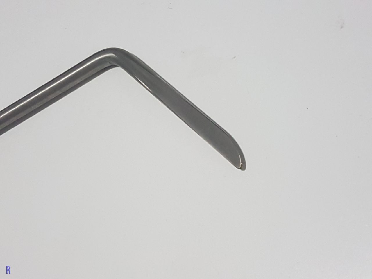 Länge 600 mm, Ausladung 80 mm, Stärke 8 mm Federstahl, Endung Flach-Spitz (Messer) Kröpfung 45 Grad